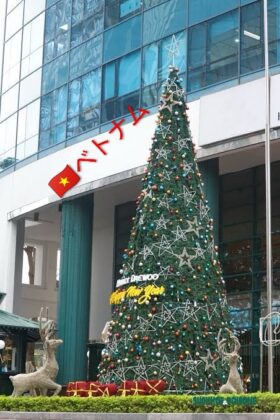 ベトナムのクリスマスツリーには「HappyNewYear」と書かれています。
