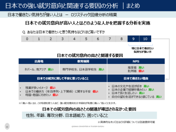 日本で働きたいと強く思っている留学生は6割以上おり、その傾向が強いのがネパールや南アジア(バングラディシュ、スリランカなど)と言うことも読み取れます。