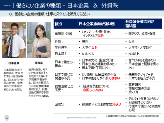 また、日本企業と外資系企業への希望者にも出身地や性別でも違いがあることがわかります。