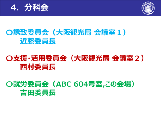 次に誘致、支援・活用、就労の各委会からの発表がありました。