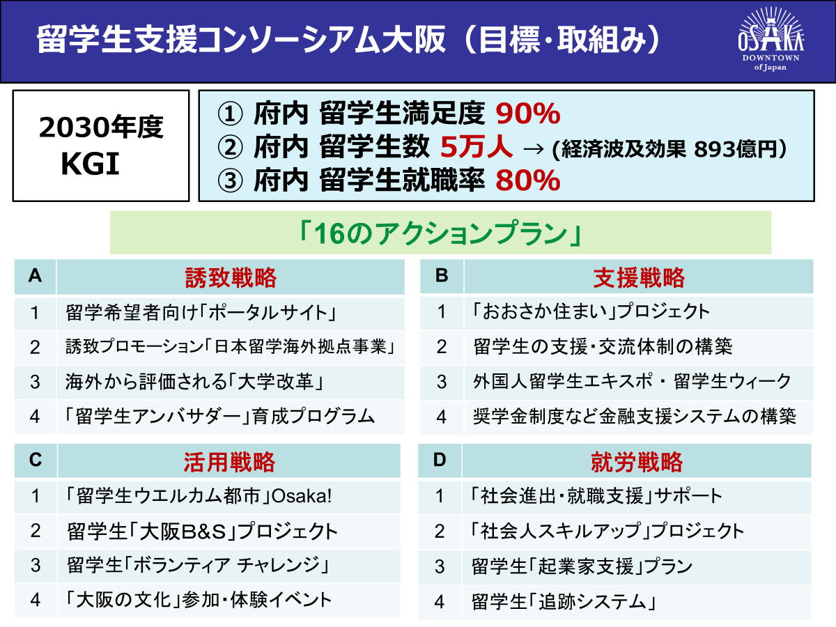 留学生コンソーシアム大阪は、留学生にとって「学んでよし」・「住んでよし」・「訪れてよし」・「働いてよし」の大阪実現に向けて、留学生に寄り添い・支えることを念頭に活動を行なっています。