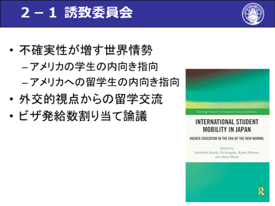 誘致委員会からは留学生の不確実性な世界情勢を紹介いただきました。